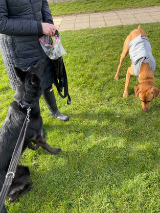 He now has a favourite place to go where he plays frisbee with other dogs and people walking past at a distance and gradually closing that. He has a dog friend he is now spending more time on walks with, and today we added to that with Bella. Bella is the perfect dog for him to meet on lead and mega focused on me, so happy to give him space where he needs it and doesn’t pay much interest in him unless he interacts first. Harvey was dying to play with her by the end and was happy playing frisbee around her.